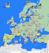 Friday Sunny in Iberia, just some light rain in northwest Spain late in the day. Some light showers in the Balearics, Sardinia, and Corsica, turning dry and bright. Turning fine also for much of Italy though southern areas remain showery. Patchy rain with upland snow in the Baltics but dry for many. Frequent showers in Greece and west Türkiye. Milder in west France with rain in central and northern areas. Rain too in the Low Countries and western Germany. Largely dry with good morning sunshine across the Alps. Similarly bright early but cold from Austria into Czechia, Slovakia, and Poland; it will turn cloudy here later. Staying fine in Hungary. Some rain in Romania and Bulgaria. A southwesterly wind across Scandinavia, gale force along the southwest Norwegian coast. Rain in Finland with snow to the north, this snow stretching into northern Sweden and Norway. Most of Sweden is dry, just some light rain in the far south. Dry but cloudy for Denmark. Some rain in western parts of Latvia and Estonia, drier elsewhere in the Baltic States. Further rain and snow in southwest Norway, largely dry well inland in the south.