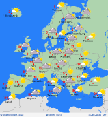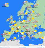 Monday Dry and mostly sunny for Iberia and the Balearics; just some local light rain in northern Spain. Showery rain in Sardinia, but bright in Corsica. Heavy rain in central and southern Italy, often sunny to the north but with some showers in the northeast. Starting bright in the Balkan States, showers breaking out in Croatia and Bosnia and Herzegovina, a broader area of heavy rain into Albania and North Macedonia with time. The rain affects western Greece too. Eastern Greece and Türkiye dry with sunny spells. Spells of rain in central and northern France, drier with sunshine along the south coast. Showery rain will affect most of the Low Countries and Germany through the day, the evening perhaps brighter before sunset. A spell of rain for Poland moves east, also affecting Czechia and Slovakia, then Hungary through afternoon. Some showers for Austria, drier for Switzerland. Staying drier from Belarus southward to Bulgaria, more cloud moving in from the west. Morning rain in Denmark, snow in Norway. This rain and snow slowly moves east into southwest Sweden. East and north Sweden stays mostly dry, as does much of northern Norway, a few bright spells. Showery rain affects the western Baltic States, a few patches further east in the morning, but eastern areas remaining largely bright. Finland starts dry with sunny spells, some patchy rain in the south later.