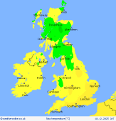 Friday A week cold front will be clearing from England and east Scotland on Friday morning, taking outbreaks of rain with it, although perhaps not completely clearing the southeast until late afternoon. Heavy showers follow into western Ireland and increasingly west Scotland, northwest England, and west Wales. Mixed cloud and sun elsewhere, some drizzle onto west coasts too. Highs at 7 to 10C for many but up to 12C in the southeast.