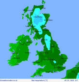 Friday Night Plenty of wintry showers over the coastal areas of Scotland, and rain showers for the eastern English coastal counties. Over Wales a few showers are possible, while Ireland will see a dry evening and night. Minimum temperatures at -2C over most parts, but locally 4C over southwest coasts. Risk of icy conditions.