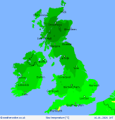 Saturday Early outbreaks of rain over eastern areas soon clear northwards. Elsewhere, the day will be largely dry, with a few coastal showers in the south and west. Sunny spells are likely, especially across Ireland. Maximum temperatures reach 8C in the south and 5C in the north.