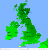 Wednesday Pressure stays low through Wednesday, centred south of the country. A front bringing cloud and rain to much of Scotland, sleet and snow over the hills of central, northern and eastern Scotland, some wintry precipitation reaching low levels. Patchy rain and cloud in northern England with showers in southern England, southern Ireland and Wales. Dry for other areas with broken cloud. Highs at 3 to 4C Scotland, northern England as well, to 9C southern England.