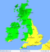 Saturday A mostly dry and bright start for many, with sunny spells developing widely. A few early showers over East Anglia will soon clear. Later in the morning, a band of rain reaches western Ireland, moving eastwards during the afternoon, though becoming increasingly showery. Further rain arrives into western Ireland overnight into Sunday. Highs of 10C in the south and 7C in the north.