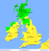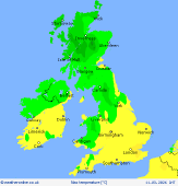 Thursday A band of rain across the northwest will steadily spread southeastwards through the day, turning heavy at times as it moves across parts of England and Wales. Behind this rain band, brighter conditions will develop across the northwest, though these will be accompanied by frequent showers. Some of these showers may turn wintry even down to lower levels, especially across northern hills. Highs of 12C in the south but 7C in the north.