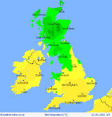 Monday Monday starts settled with bright spells in England and Wales. A strengthening southwesterly breeze builds across Ireland and Scotland, rain arriving into central and northern Scotland afternoon which will be heavy for several hours across the northwest; winds could become very strong along the coast here. England, Wales, and most of Ireland except the far north stay dry but with increasing cloud and wind. Highs to 7C in northern Scotland to 15C in southeast England.