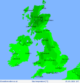Friday Cloud and rain across central, southern and eastern areas of England and Wales on Friday morning as front passes south and east. Most of the rain will be light and patchy with some low cloud shrouding hills. The cloud and outbreaks of rain will only slowly clear through the afternoon. Much brighter across northern England, Scotland and Ireland, as well as North Wales. Some heavy showers in western Scotland, these occasionally slipping further east and south. Highs at 8 to 13C.