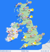 Saturday Saturday starts with a few local frosts in upland areas and sheltered valleys. A mix of showers and sunshine, the showers heaviest towards the northwest. A high pressure ridge builds from the west, pushing the showers eastward and gradually weakening their strength, brining brighter skies through afternoon. Some more cloud around in Ireland. The day could be quite blustery. Highs at 6 to 11C.