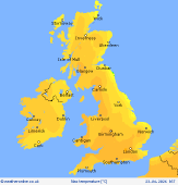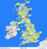 Wednesday A chilly start. Cloudy too for many eastern areas with the cloud lingering thorugh much of the day across eastern into central regions of Scotland as well as northeast areas of England where the odd spot of light rain is possible. Heavier cloud across southwest England as well as some western, though mainly southwest, regions of Ireland which are likely to see some patchy rain. The rest of the UK and Ireland will stay dry and fine and will feel pleasantly warm in the sunshine. A breezy day particularly southern England, Wales and Ireland, gusty in the west. Lighter winds further north and east. Cool 10C at best near northeast coasts, highs of 14 to 17C elsewhere, warmest in west.